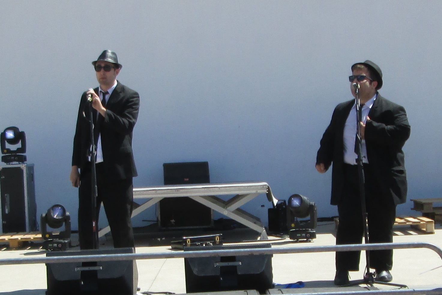 Questi Blues Brothers non si sono limitati infatti a riproporre sul palco alcune scene del film, ma si sono esibiti in un mini-concerto di tre canzoni, tradotte e cantate in italiano ma in perfetto stile blues.